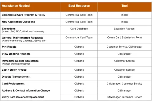 Contact the Central Commercial Card Team